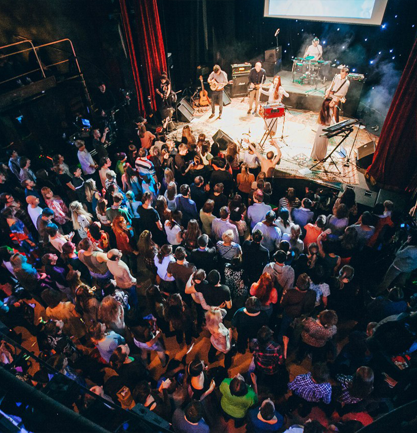 At Kirtan, you can expect a concert with musicians, music, and Mantras instead of